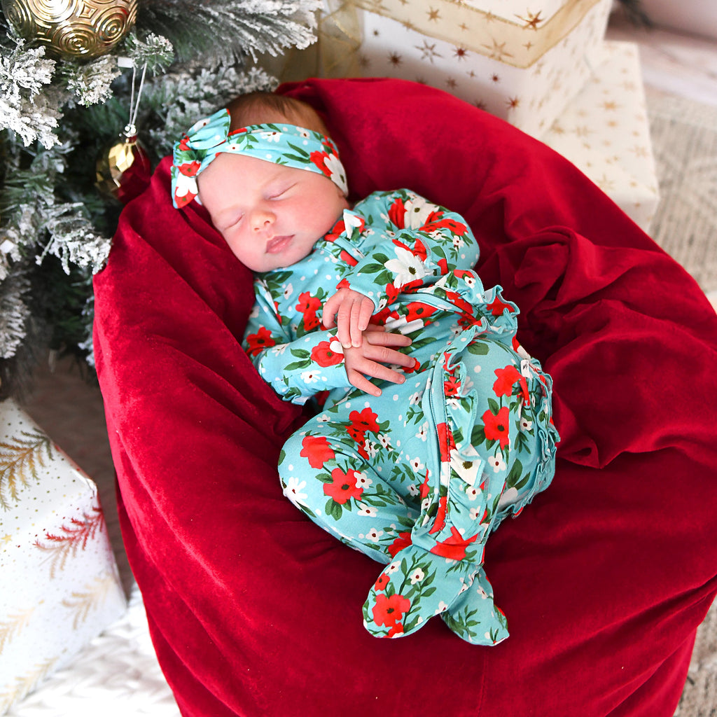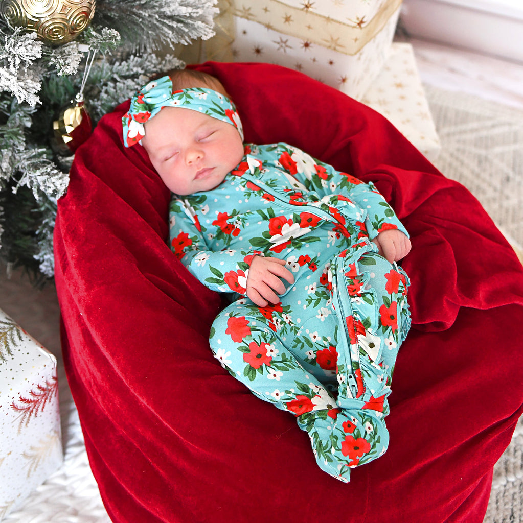 Mitten cuff on arm keeps baby from scratching, if needed. Fold-over foot at ankle can be used on chilly days when you forgot the socks! Please note: newborn size is footed.