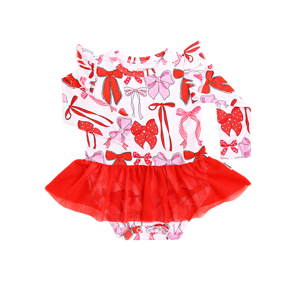 This tutu is super soft and comfortable! Featuring the sweetest little tutu skirt attached to the fitted bodysuit. 3 snaps at bottom make for easy and fast diaper changes. Snaps at the shoulder make taking on and off baby very easy!