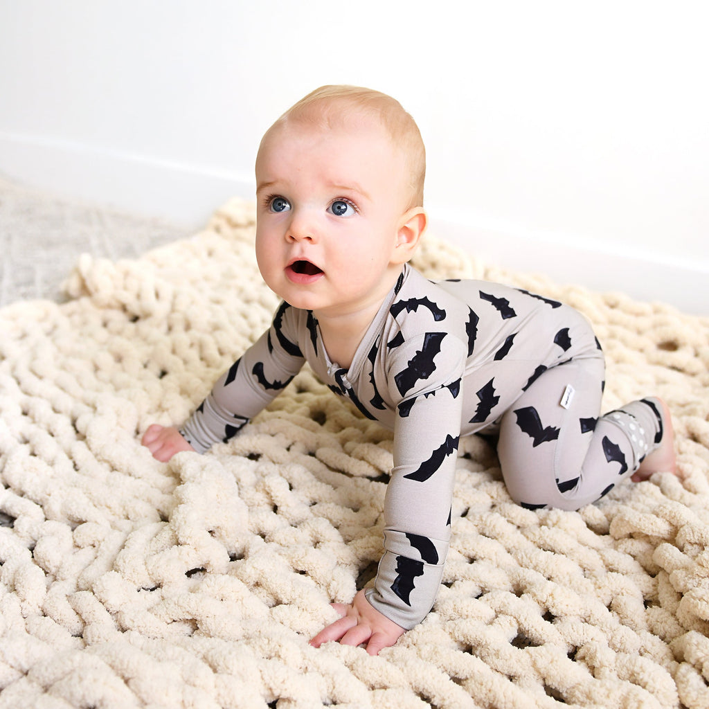 This zip one piece is super soft and comfortable. Featuring a zipper that runs from the top of the outfit to the ankle. Our favorite part about this outfit is that the zipper is 2 way! Making for super easy diaper changes without having to remove the whole outfit.