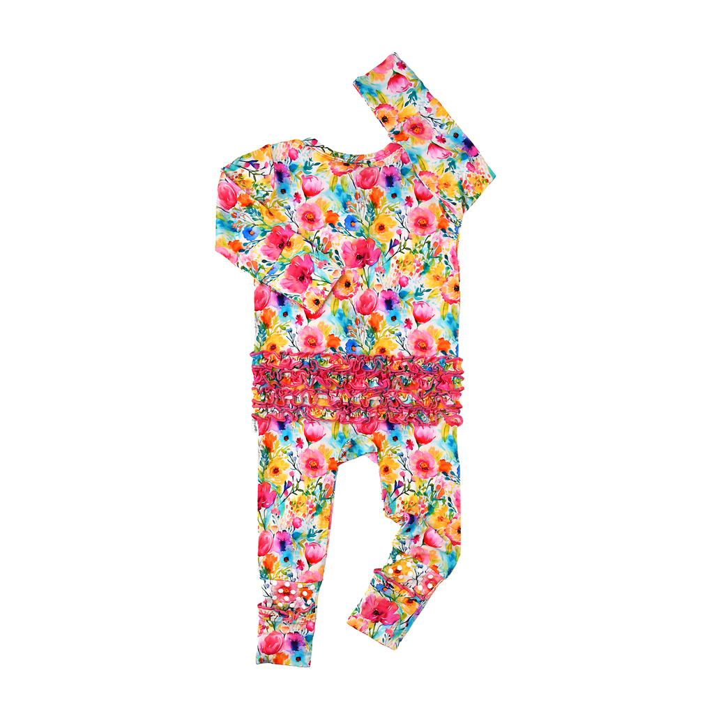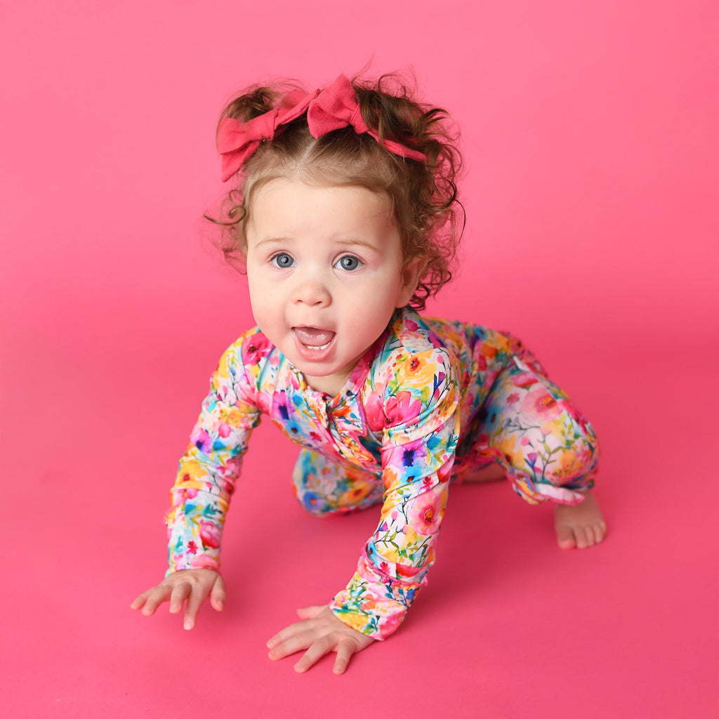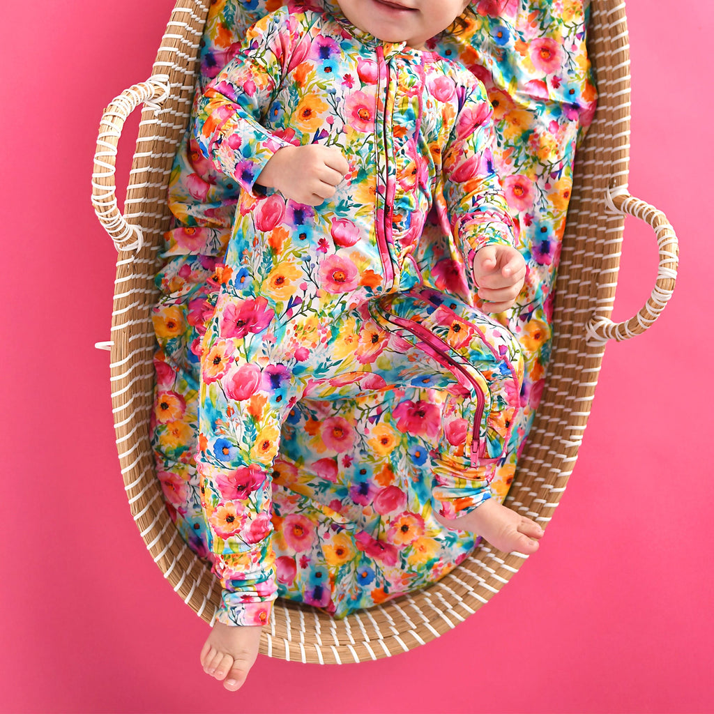This zip one piece is super soft and comfortable. Featuring a zipper that runs from the top of the outfit to the ankle. Our favorite part about this outfit is that the zipper is 2 way! Making for super easy diaper changes without having to remove the whole outfit.