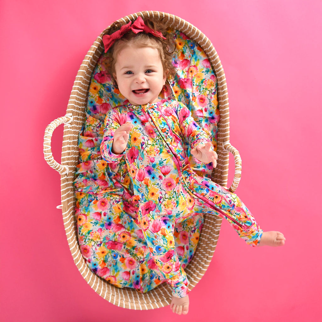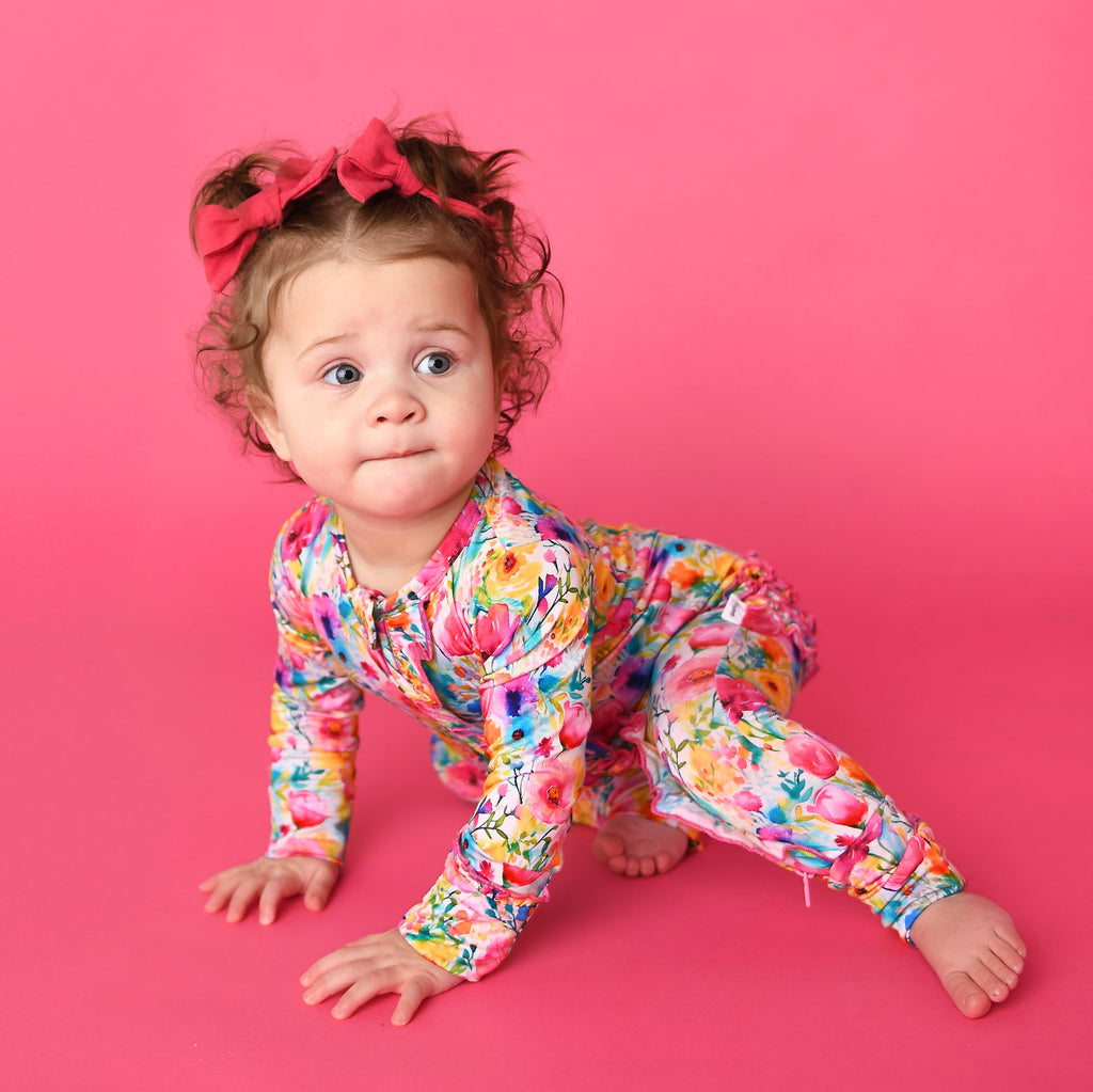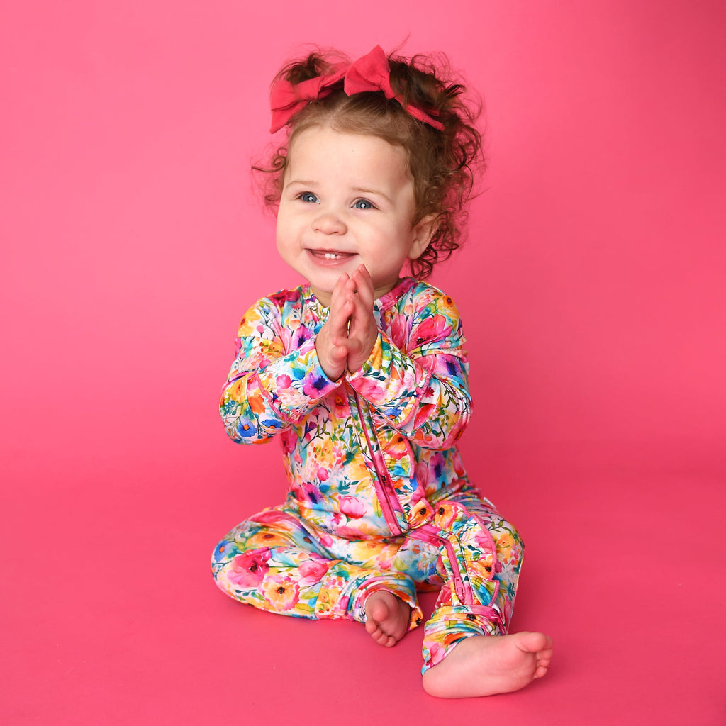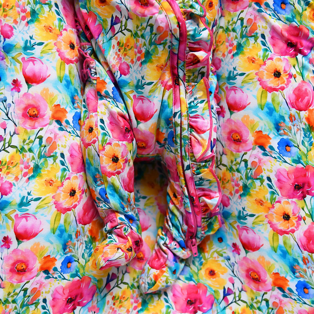 This zip one piece is super soft and comfortable. Featuring a zipper that runs from the top of the outfit to the ankle. Our favorite part about this outfit is that the zipper is 2 way! Making for super easy diaper changes without having to remove the whole outfit.
