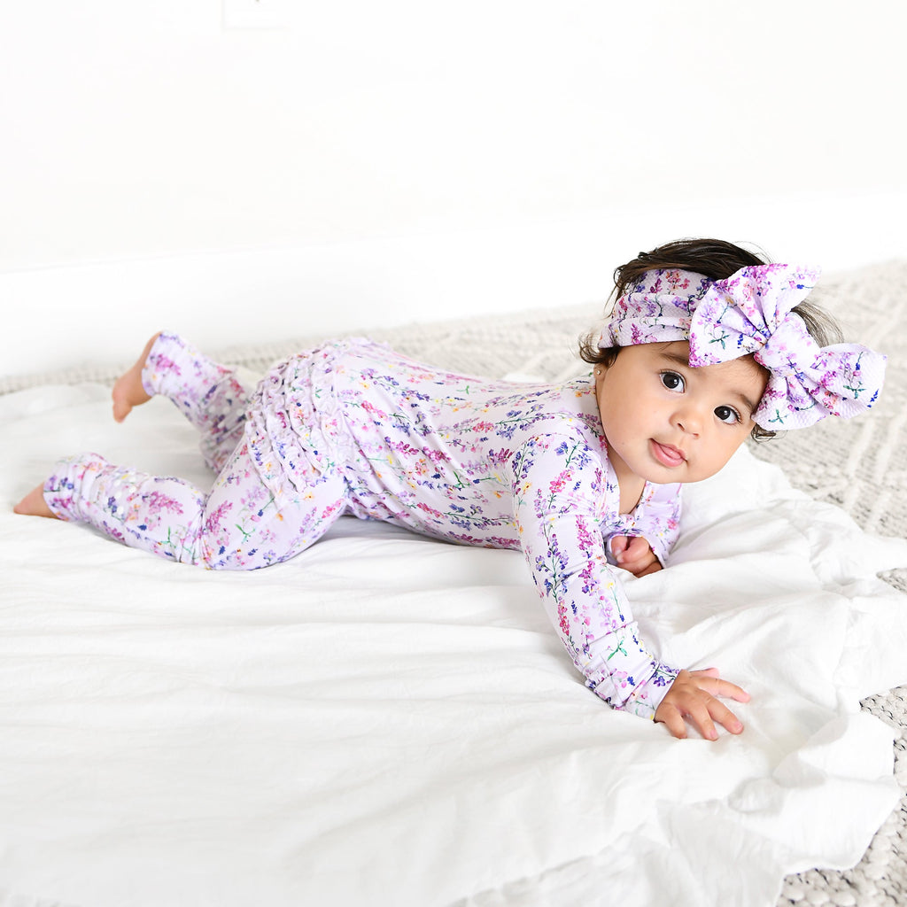 This beautiful headwrap is the perfect accessory for your sweet baby! Made from bullet fabric, a poly/spandex blend, it is super soft and stretchy!
