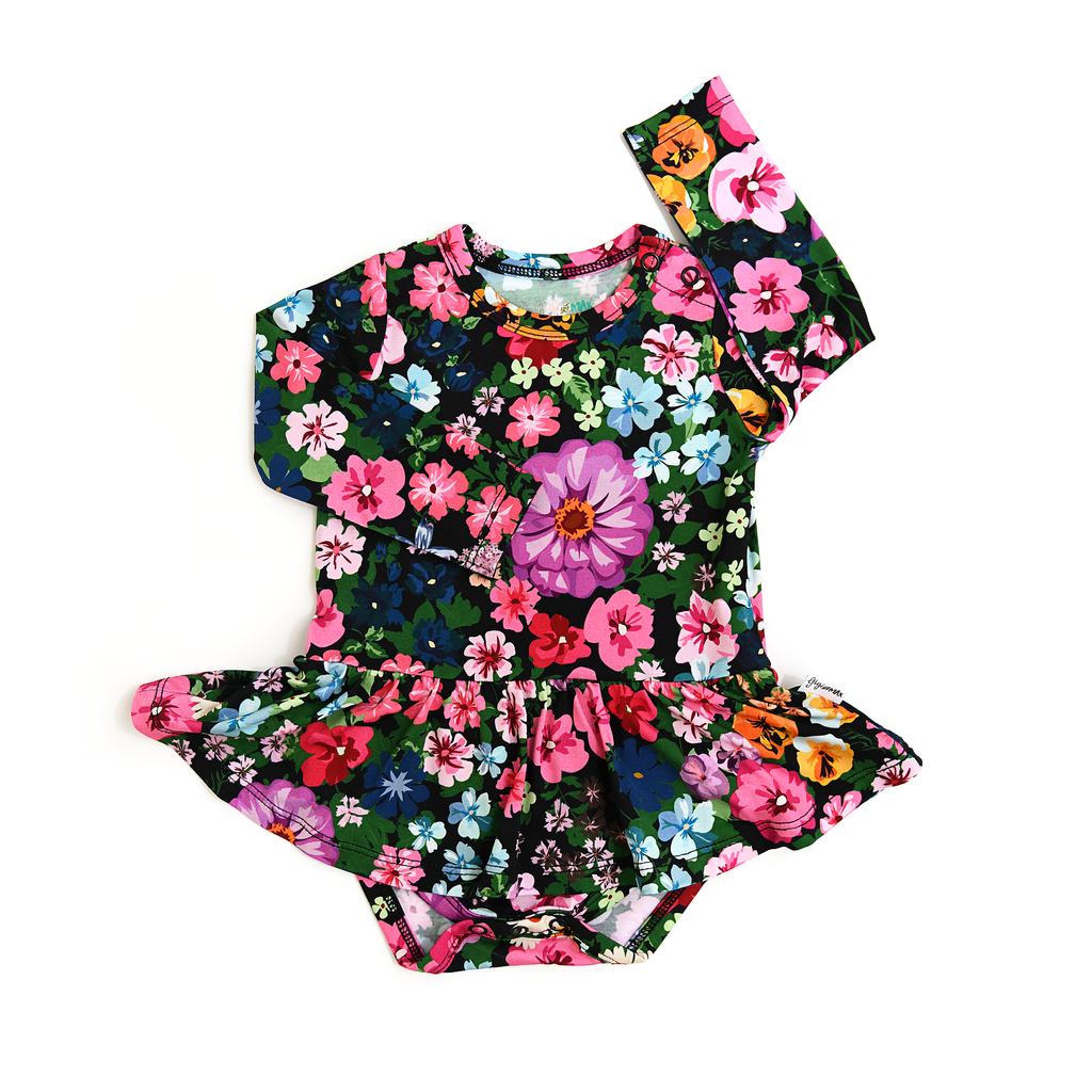 This tutu is super soft and comfortable! Featuring the sweetest little tutu skirt attached to the fitted bodysuit. 3 snaps at bottom make for easy and fast diaper changes. Snaps at the shoulder make taking on and off baby very easy!