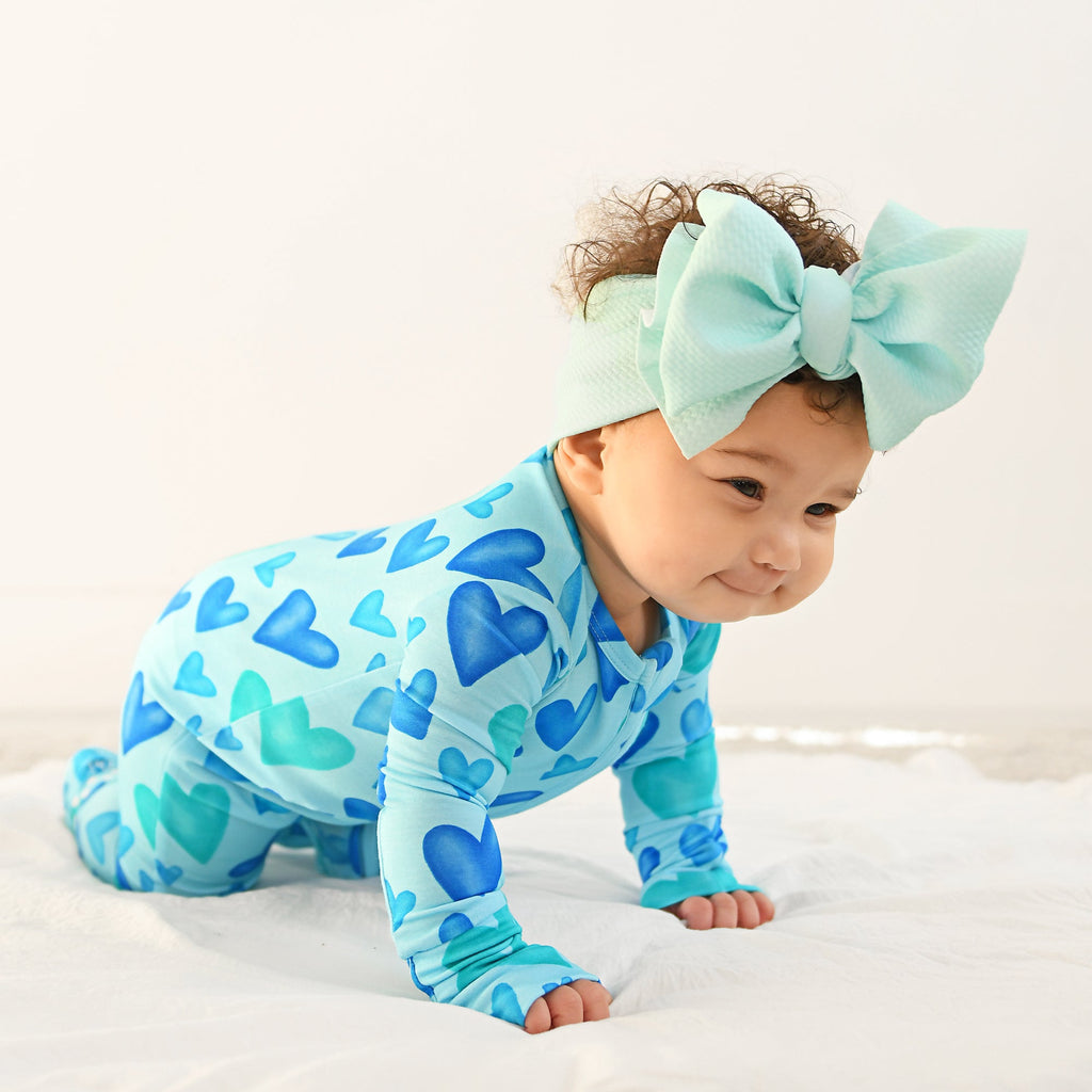 This zip one piece is super soft and comfortable. Featuring a zipper that runs from the top of the outfit to the ankle. Our favorite part about this outfit is that the zipper is 2 way! Making for super easy diaper changes without having to remove the whole outfit.