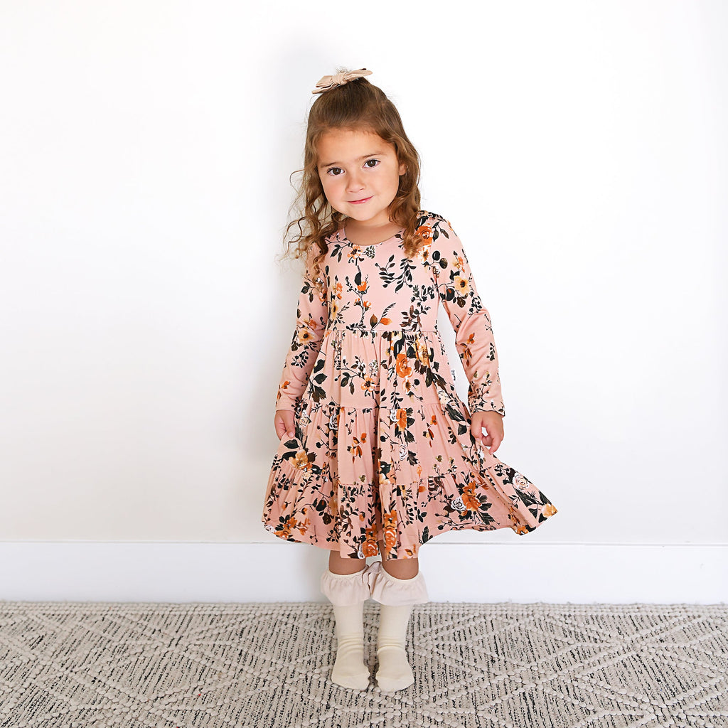 This adorable swing dress is a must have for your cutie, it's perfect for twirling, super soft and so comfortable! Snaps at the shoulder make taking on and off very easy! Bodice is double lined. The tiered skirt is absolutely beautiful.