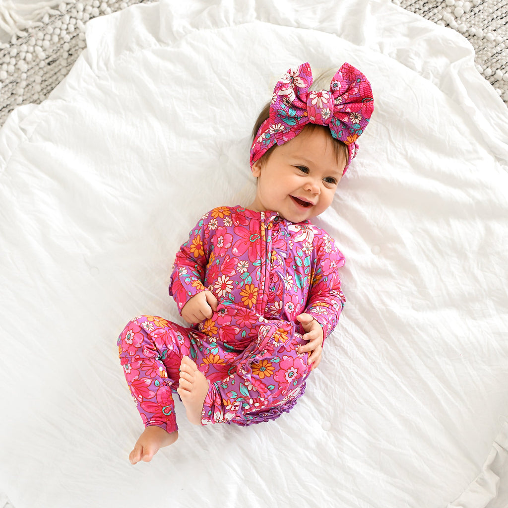 This zip one piece is super soft and comfortable. Featuring a zipper that runs from the top of the outfit to the ankle. Our favorite part about this outfit is that the zipper is 2 way! Making for super easy diaper changes without having to remove the whole outfit.