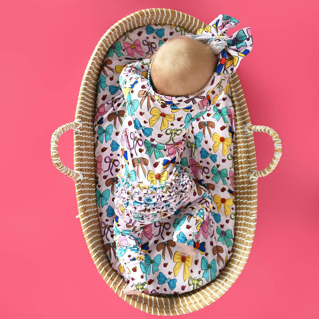 Mitten cuff on arm keeps baby from scratching, if needed. Fold-over foot at ankle can be used on chilly days when you forgot the socks! Please note: newborn size is footed.