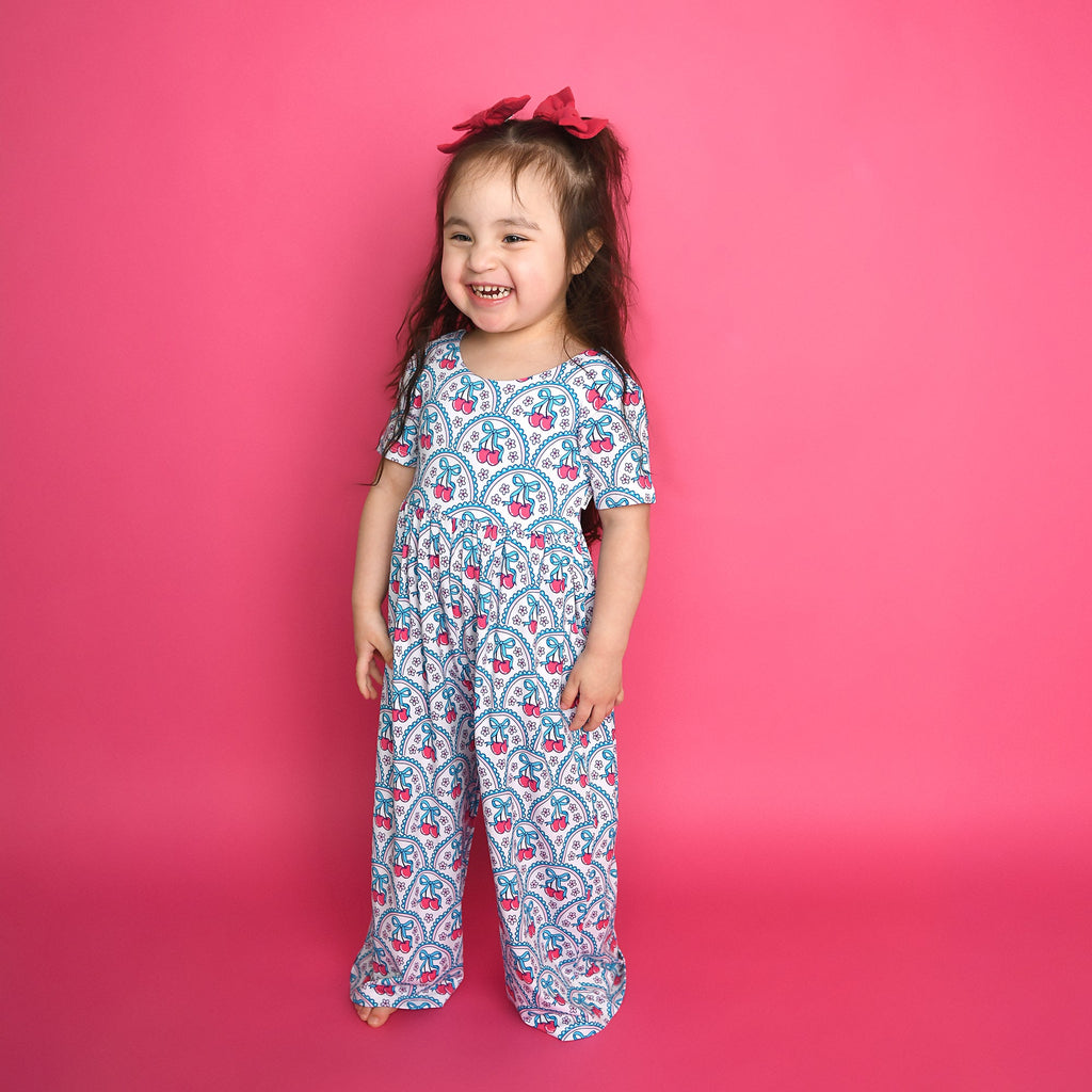 Your little one will love the easy comfort of this wide leg romper. Made from luxuriously soft and breathable bamboo viscose, it has the perfect amount of stretch for play and everyday wear. The wide leg fit gives it a relaxed, stylish look while still keeping it practical and comfy.