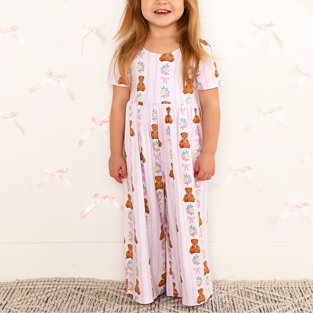 Your little one will love the easy comfort of this wide leg romper. Made from luxuriously soft and breathable bamboo viscose, it has the perfect amount of stretch for play and everyday wear. The wide leg fit gives it a relaxed, stylish look while still keeping it practical and comfy.