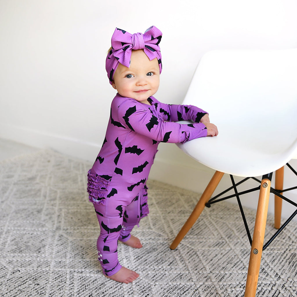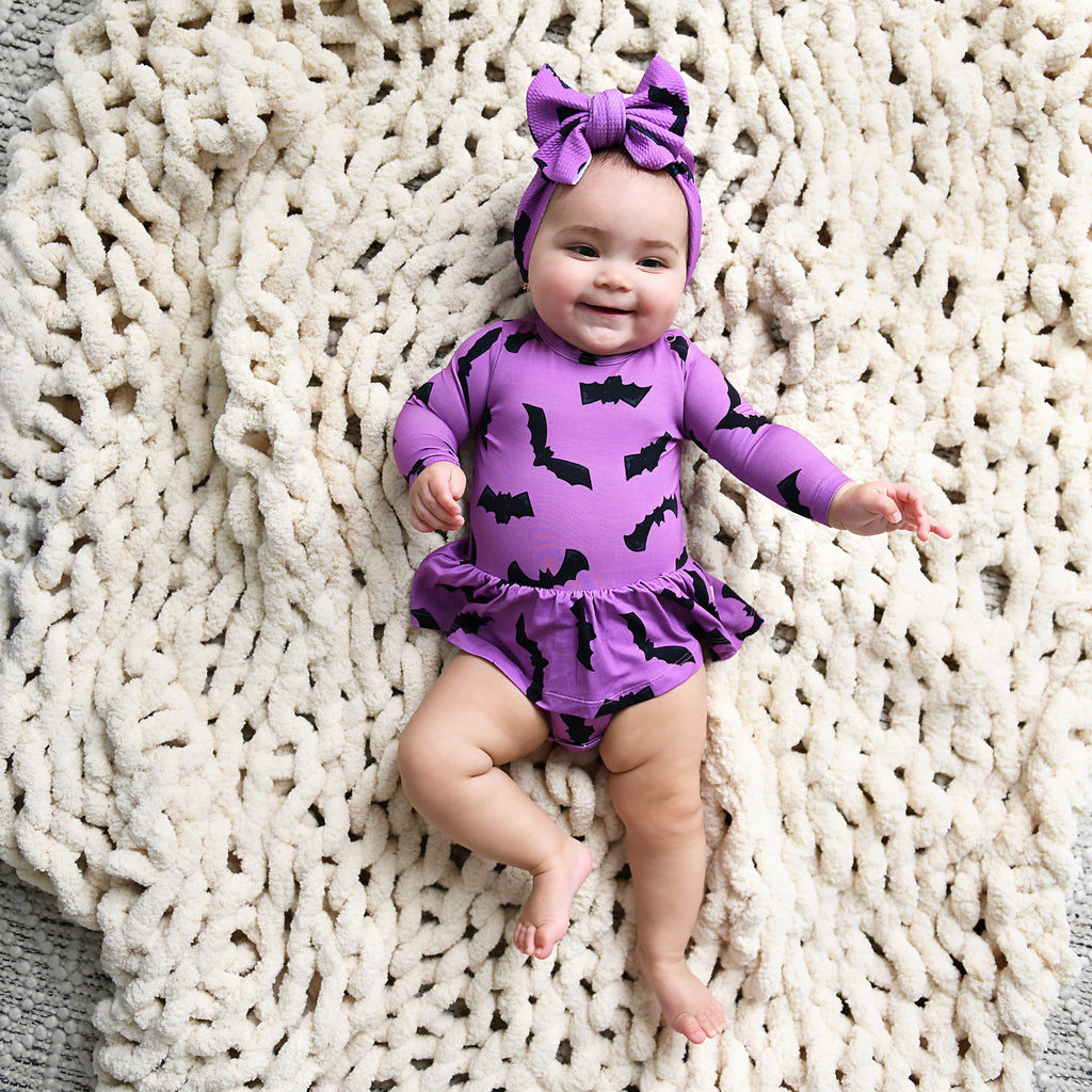 Due to the differing fabric, the coloring in the bow is not an exact match to our bamboo clothing.