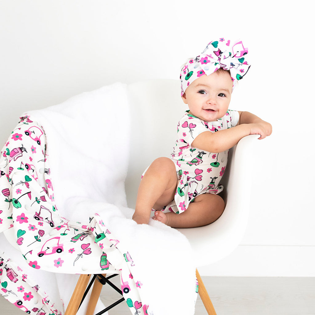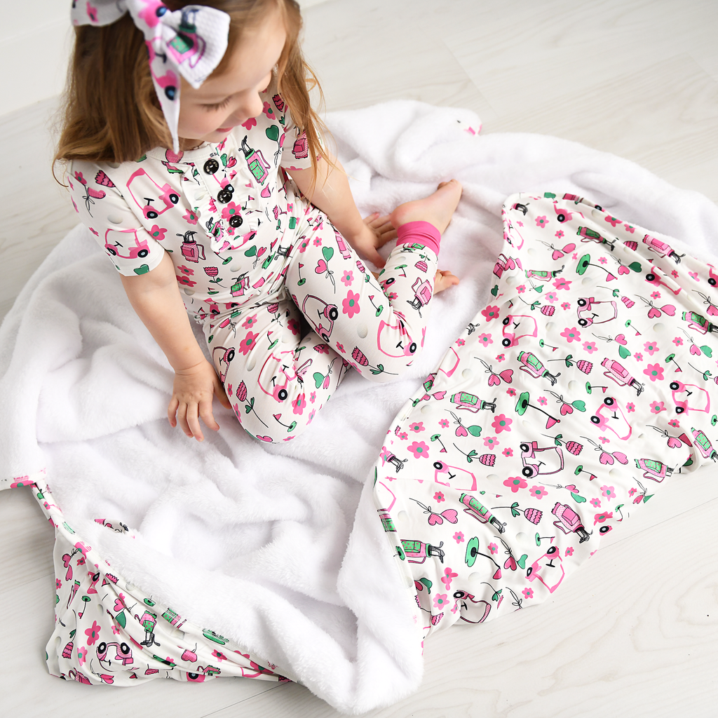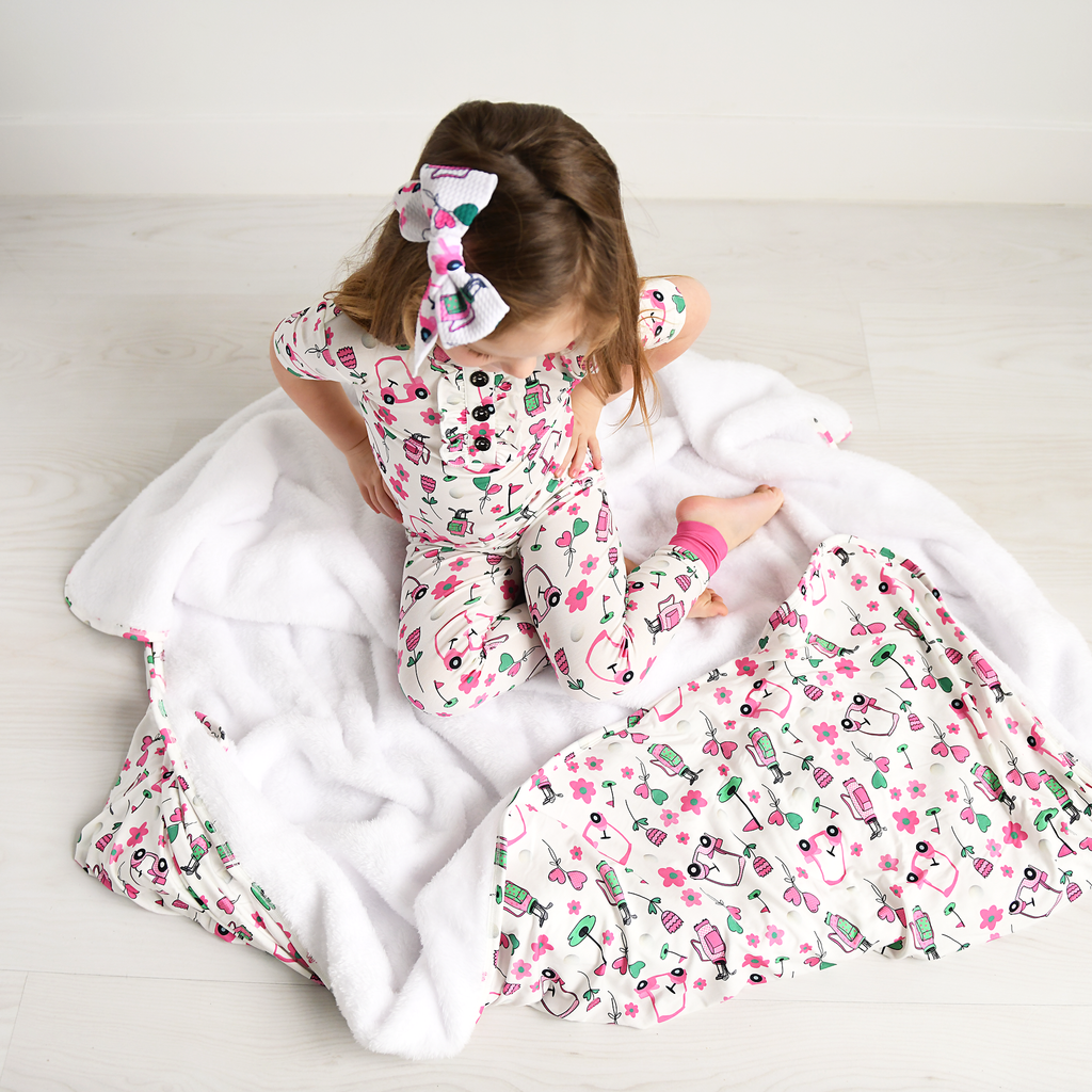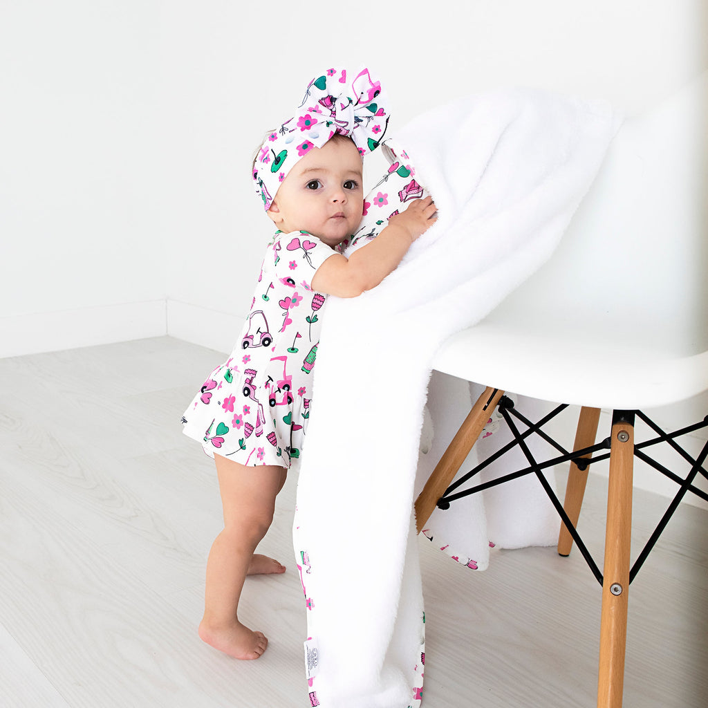 This cozy blanket is beyond perfect for any sweet baby or toddler! At 52" x 52" this large blanket is meant to grow with baby from those early days up through toddler naptime. A keepsake to hold onto for years!