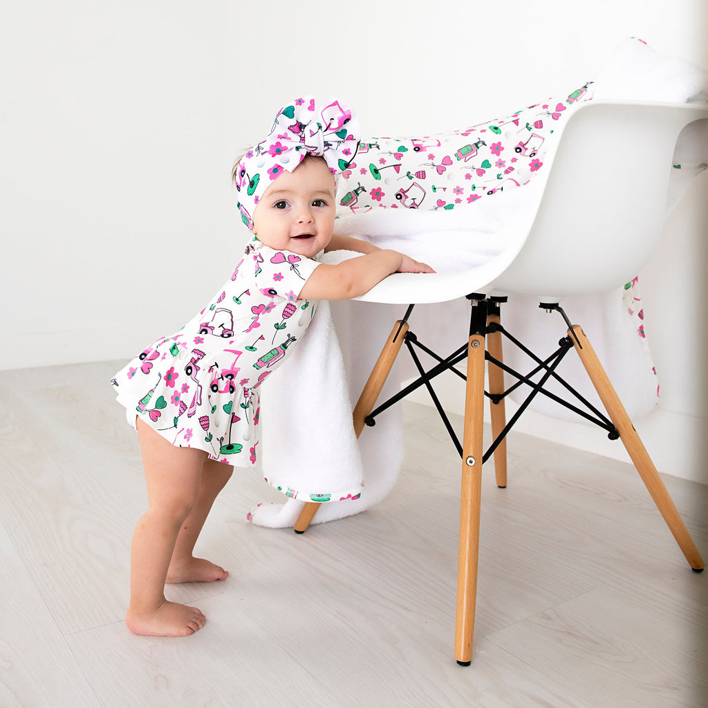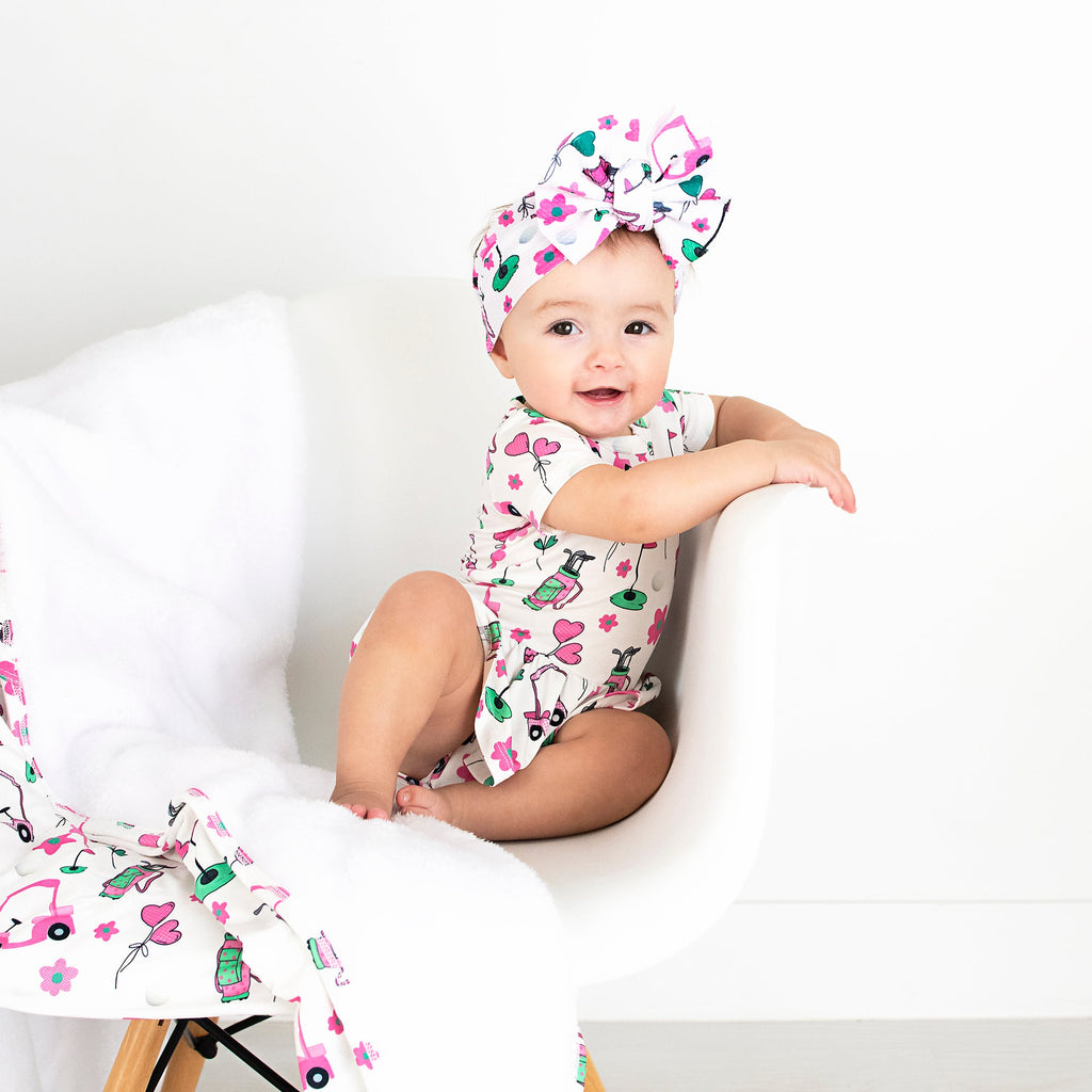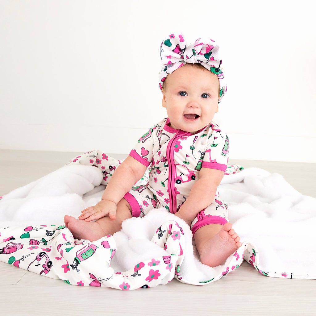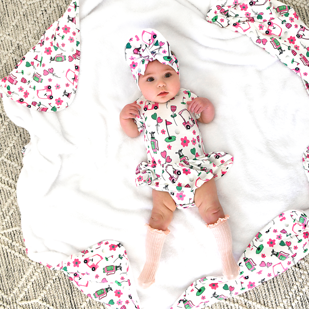 This cozy blanket is beyond perfect for any sweet baby or toddler! At 52" x 52" this large blanket is meant to grow with baby from those early days up through toddler naptime. A keepsake to hold onto for years!