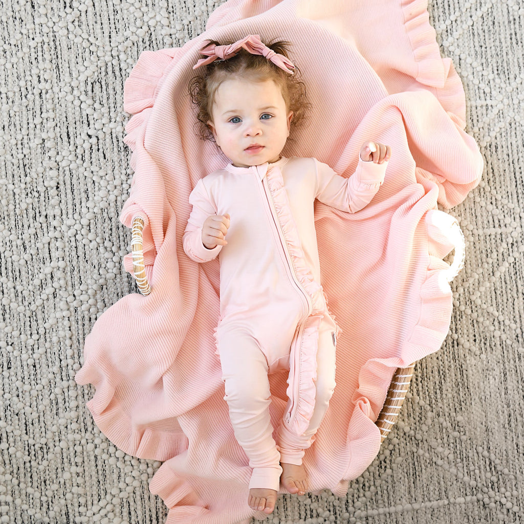 Light Pink KNIT RUFFLE BLANKET