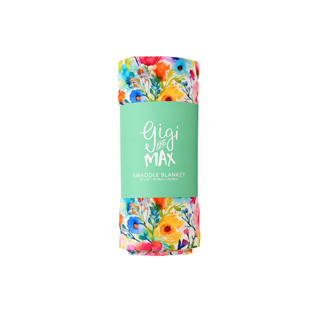 Swaddle blanket is 47" X 47" - perfect for light weight swaddling, stroller blanket, and nursing cover! Pattern of the blanket is only on one side, beautifully finished around the edges for the perfect professional look!