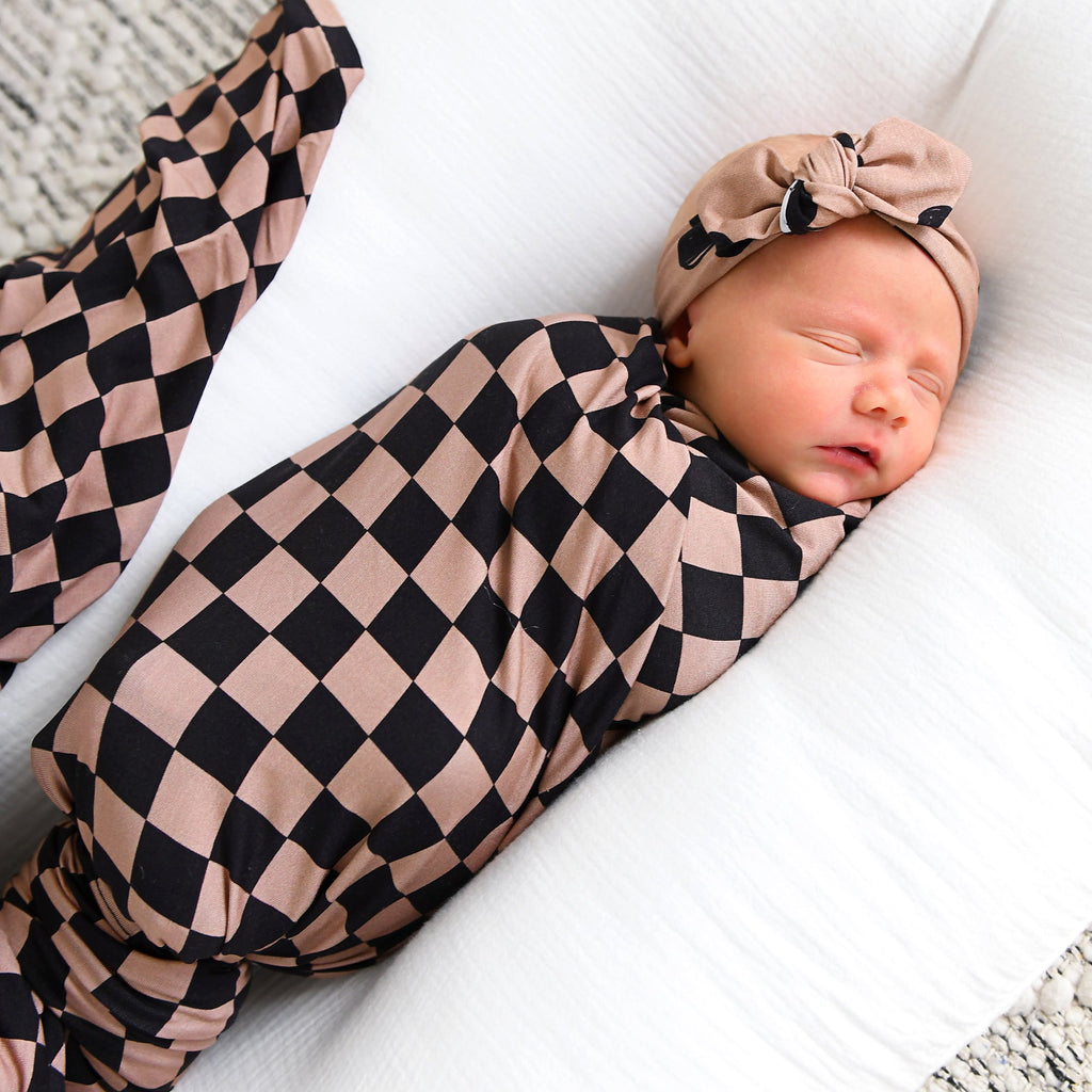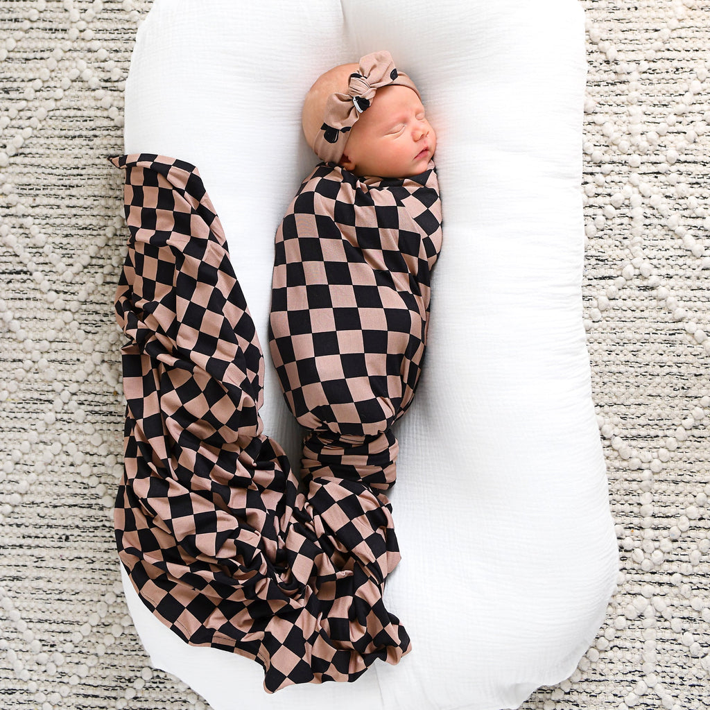 This swaddle blanket is beyond perfect for any sweet baby on the way. Made out of a super soft stretchy knit.