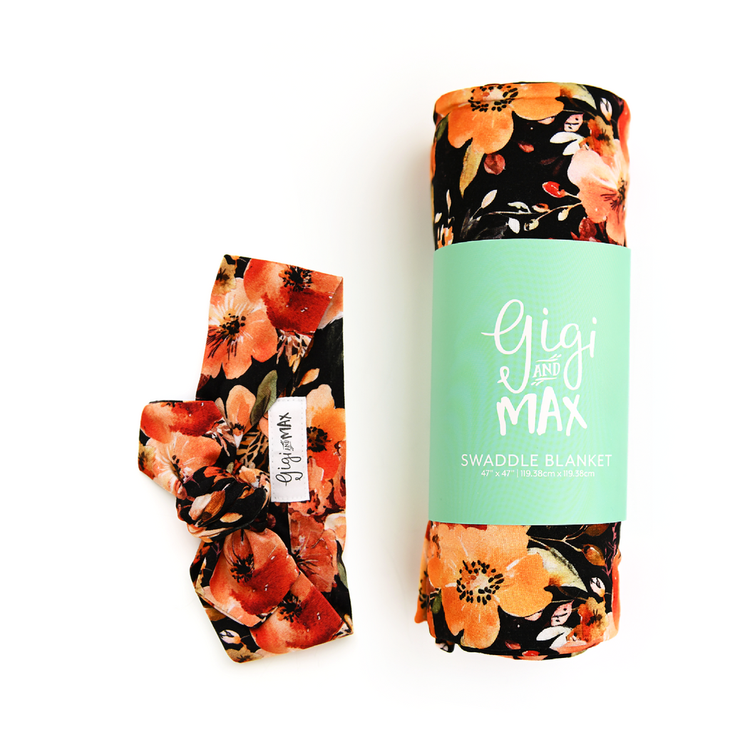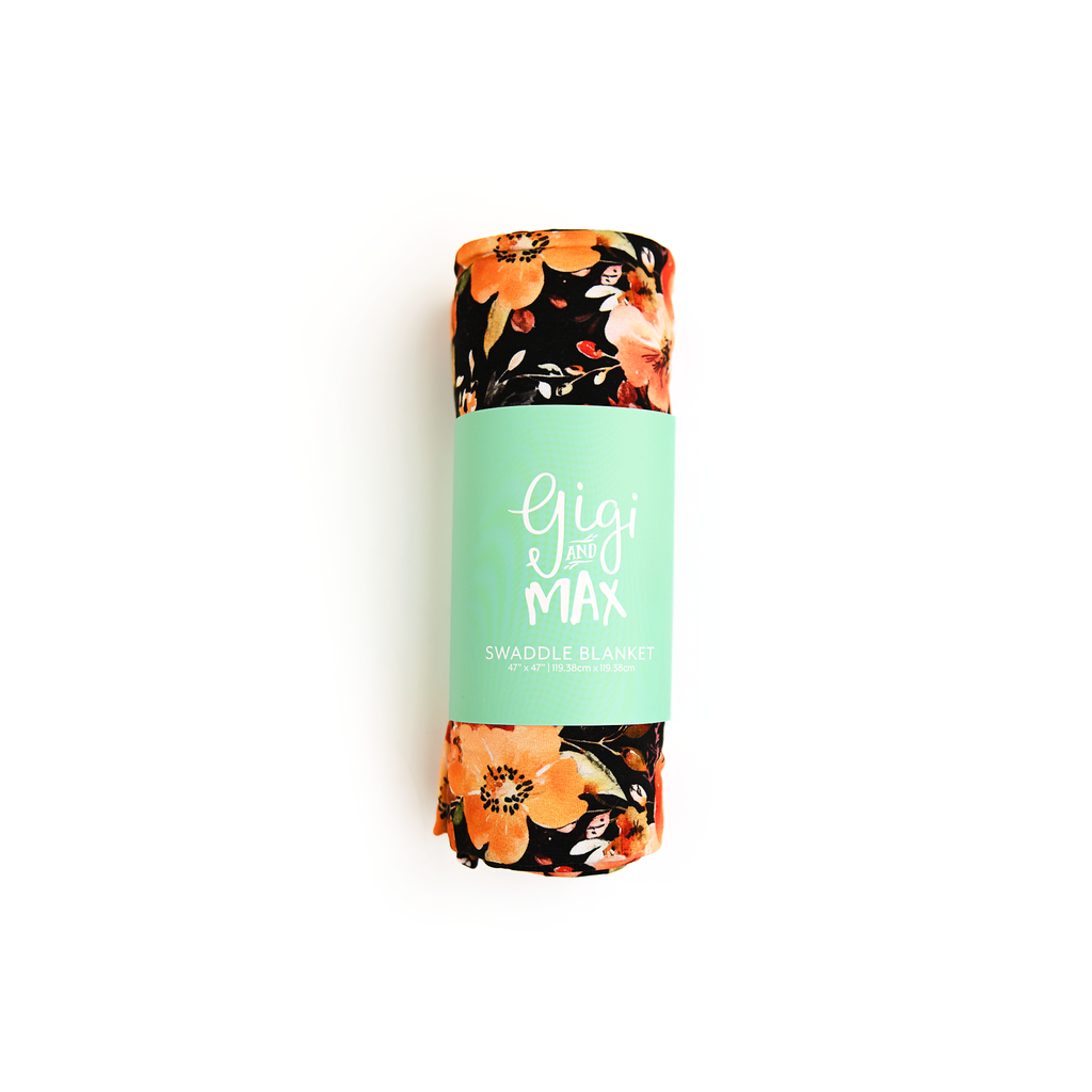 Swaddle blanket is 47" X 47" - perfect for light weight swaddling, stroller blanket, and nursing cover! Pattern of the blanket is only on one side, beautifully finished around the edges for the perfect professional look!