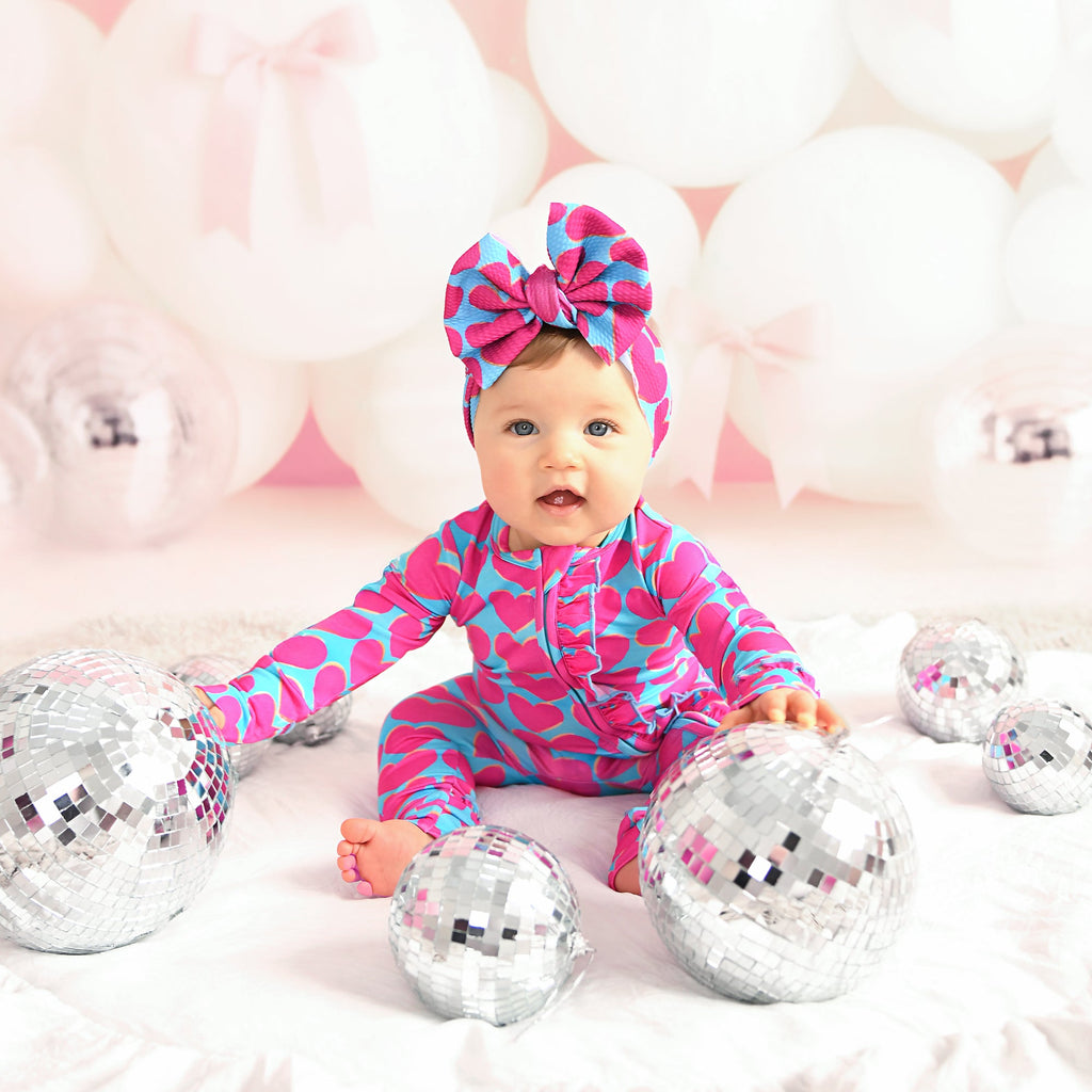 This beautiful headwrap is the perfect accessory for your sweet baby! Made from bullet fabric, a poly/spandex blend, it is super soft and stretchy!