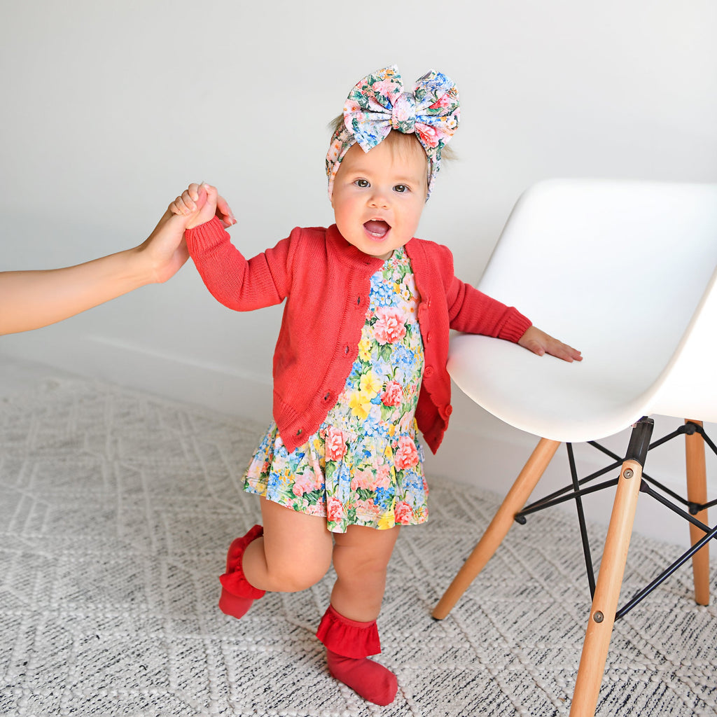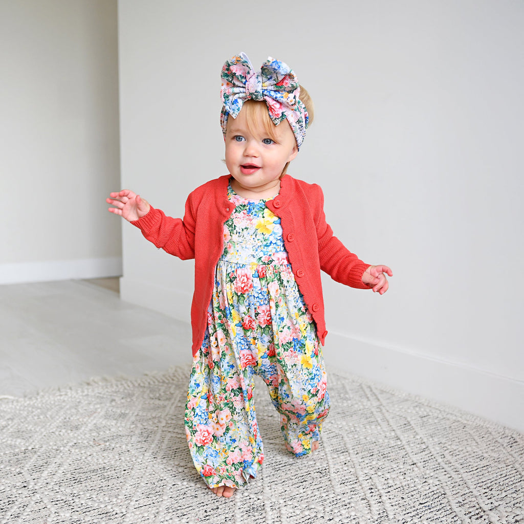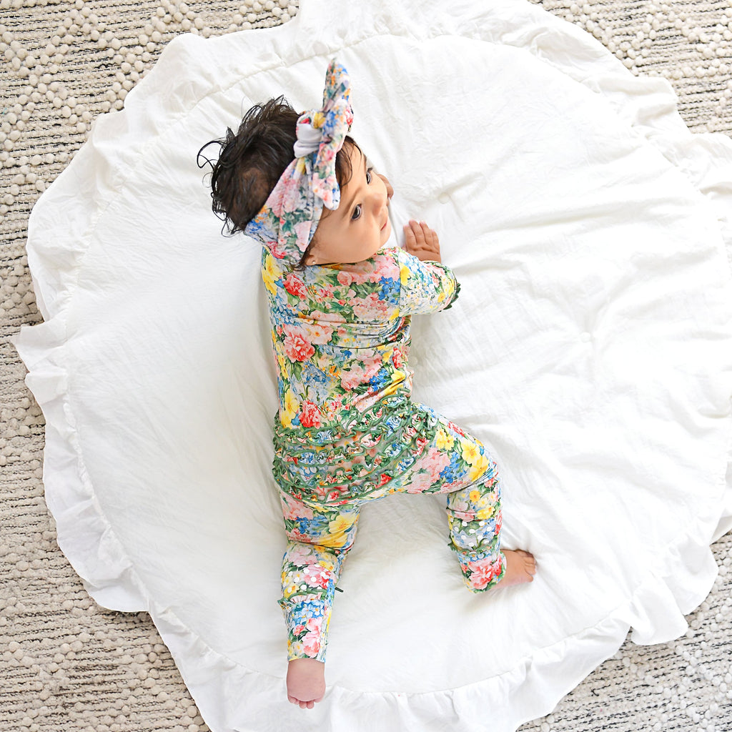 This beautiful headwrap is the perfect accessory for your sweet baby! Made from bullet fabric, a poly/spandex blend, it is super soft and stretchy!