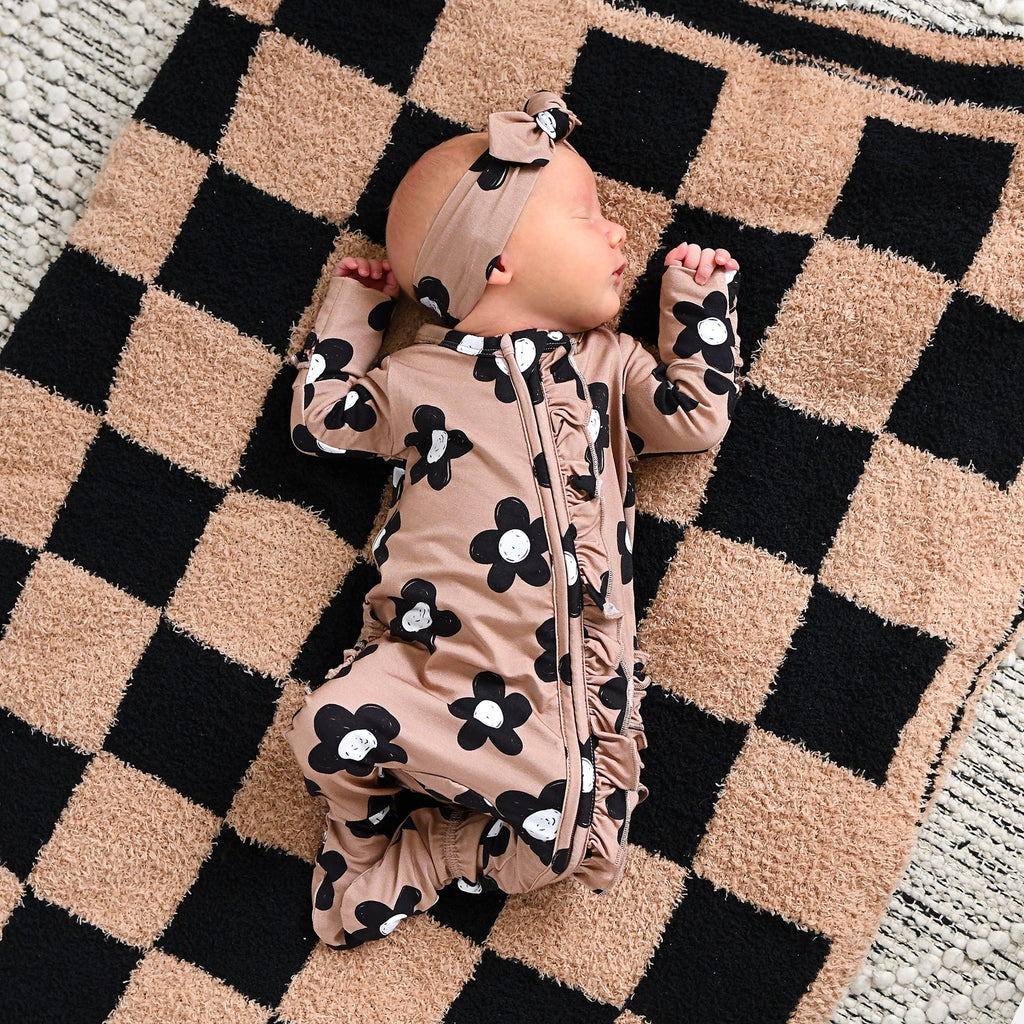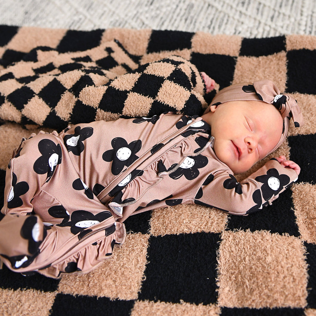 This zip one piece is super soft and comfortable. Featuring a zipper that runs from the top of the outfit to the ankle. Our favorite part about this outfit is that the zipper is 2 way! Making for super easy diaper changes without having to remove the whole outfit.