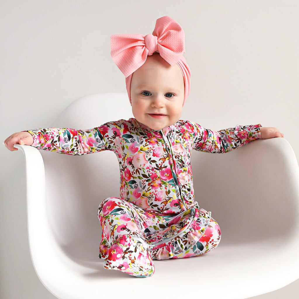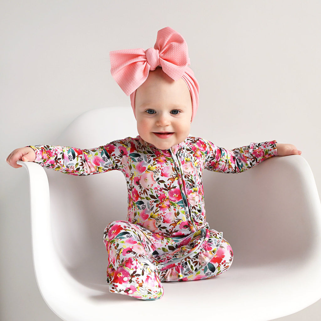 This zip one piece is super soft and comfortable. Featuring a zipper that runs from the top of the outfit to the ankle. Our favorite part about this outfit is that the zipper is 2 way! Making for super easy diaper changes without having to remove the whole outfit.